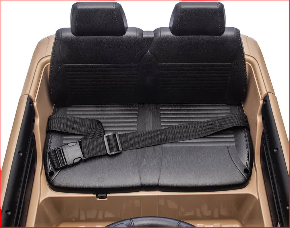 * Motor: Two Driving Motors * Motion: Forward / Reverse * 2.4G Parental Remote Control: Yes* FM Radio: Yes * Openable doors * Lights Sound: Yes * Wheel Suspension: Yes
